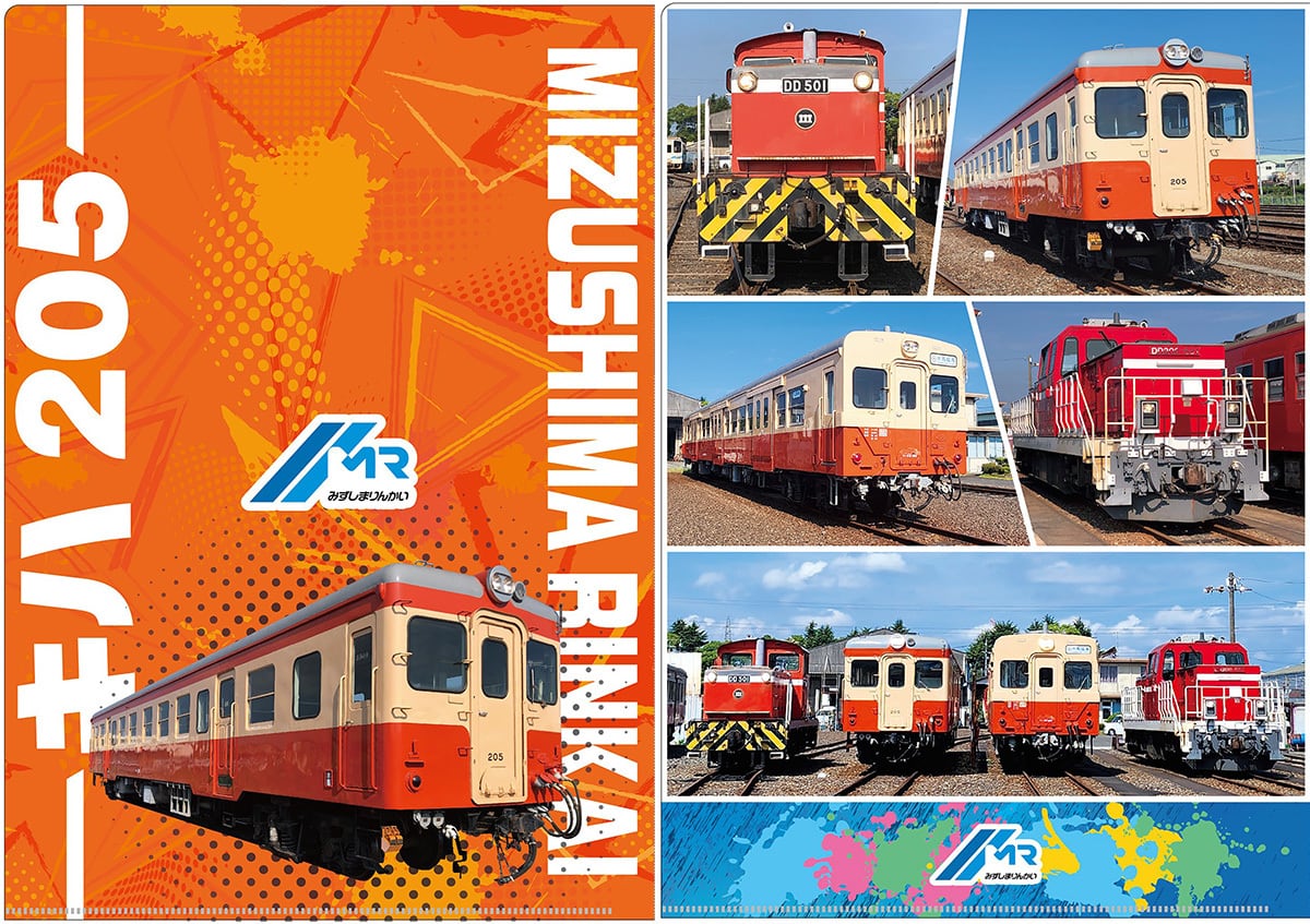 書類や資料をしっかり保護しつつ、デザインも人気車両キハ205と水島臨海鉄道の車両大集合の2種類をご用意!