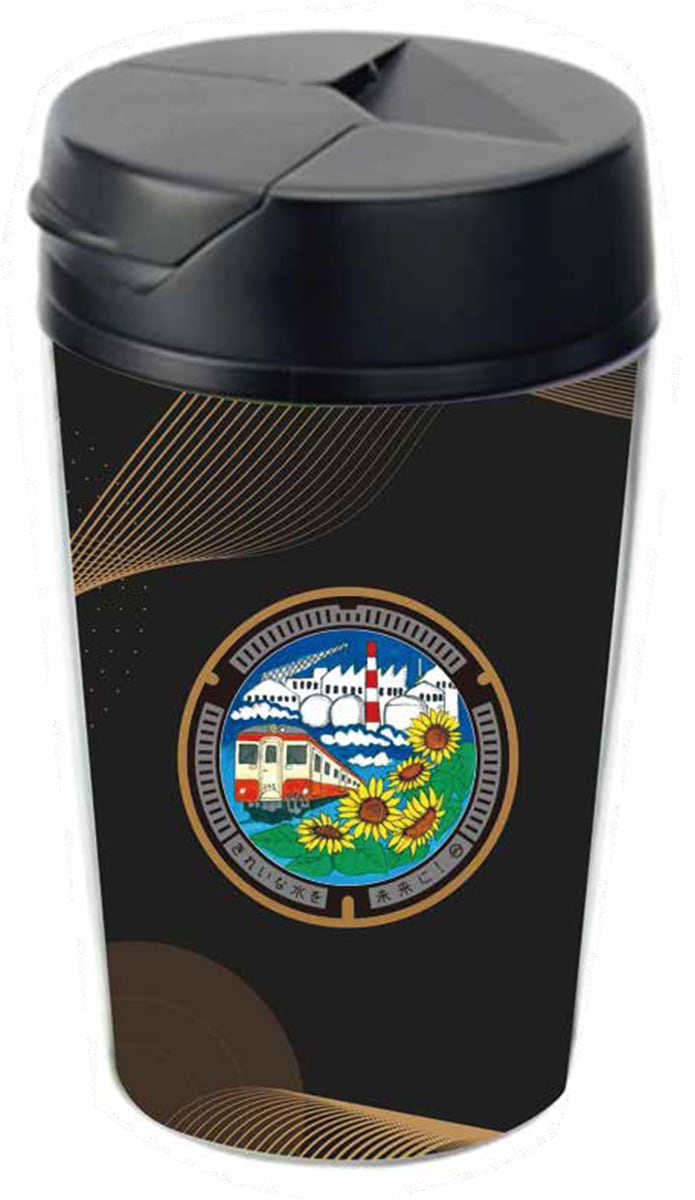 落着いたデザインのオリジナルタンブラーにマンホールデザインが目を引く魅力的なアイテムです。飲み口部分は大きく開く設計なので、飲み物を素早く楽しめるだけでなく、お手入れも簡単です。